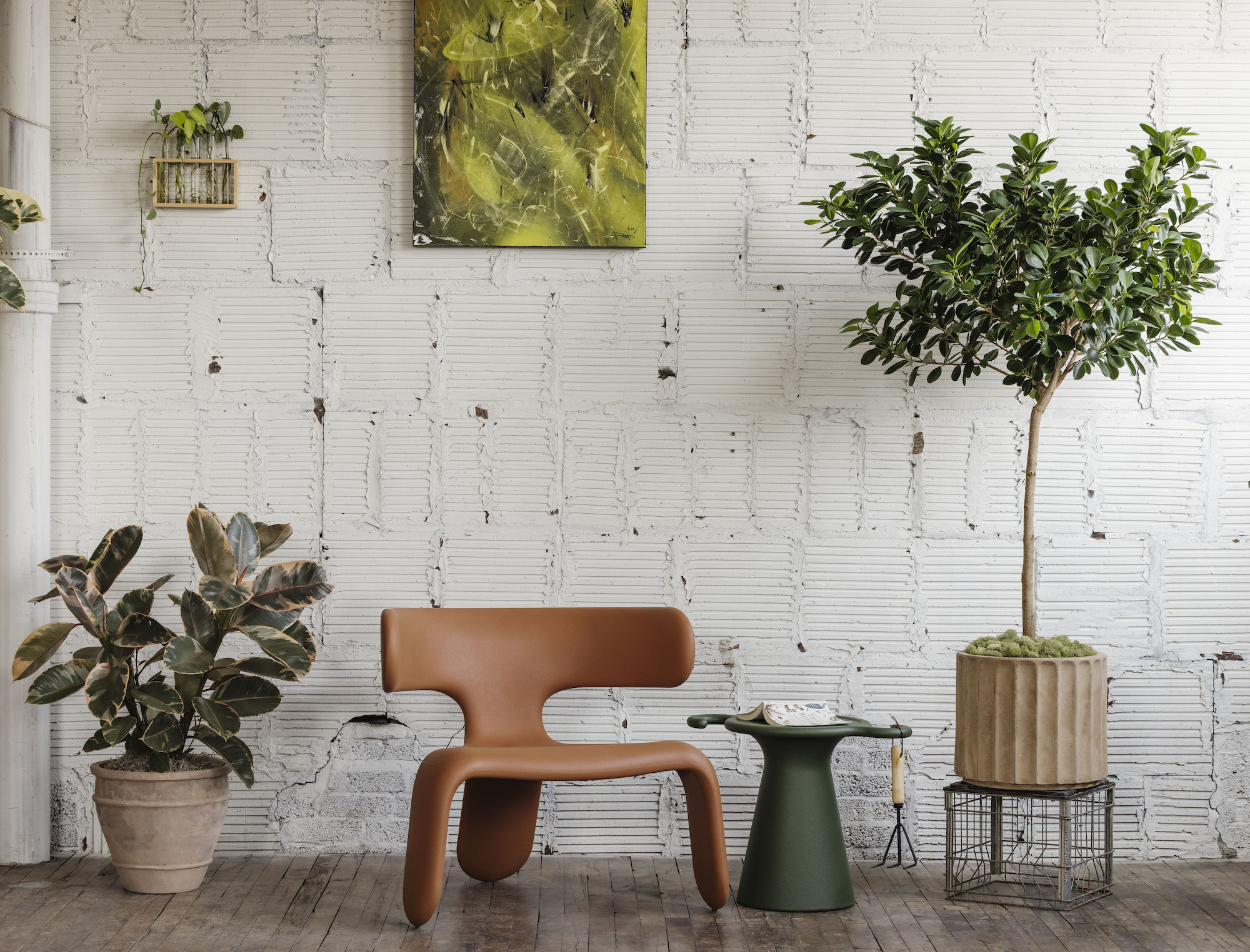 - Styled plant installations for organic texture